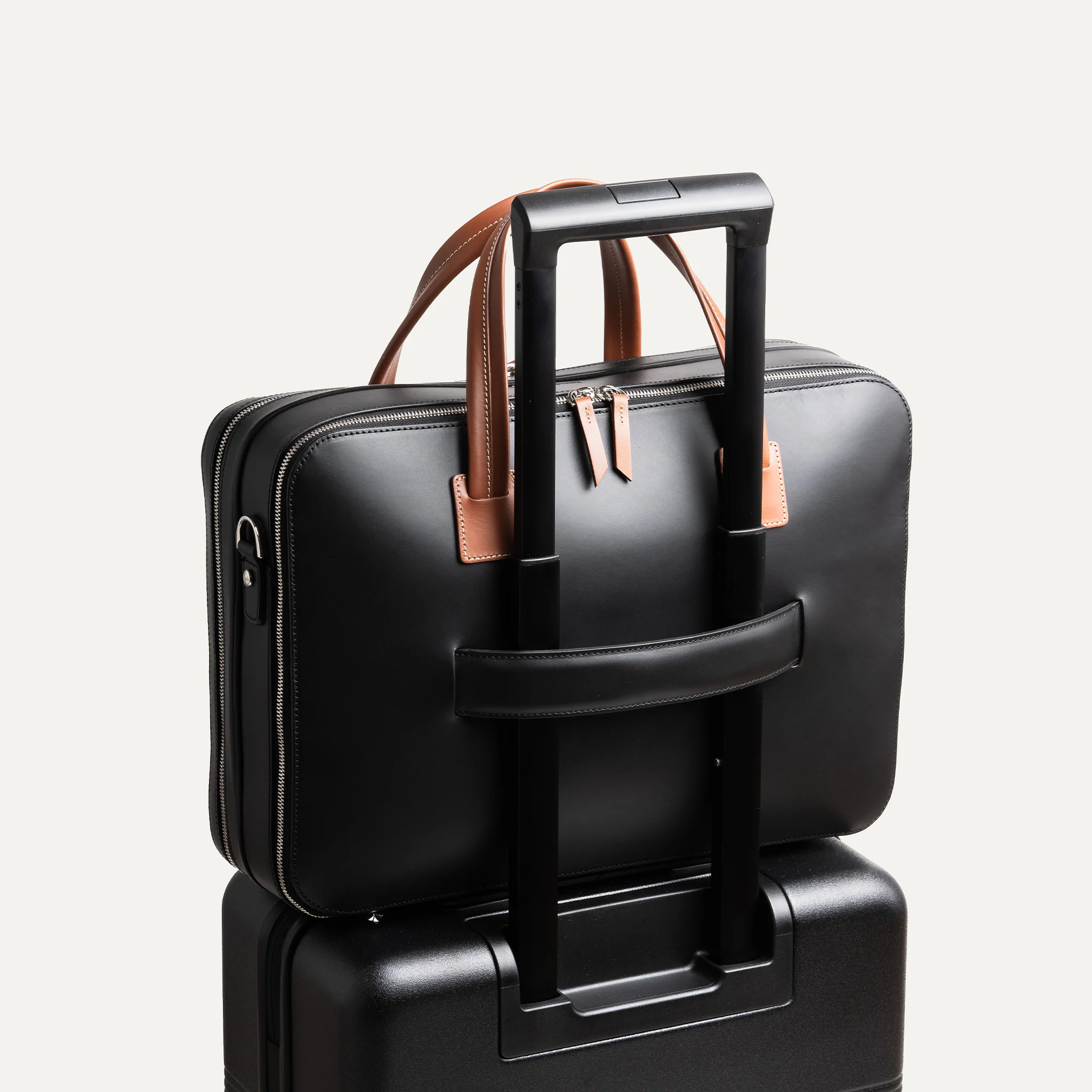 La combinaison du cuir noir profond et des poignées cognac crée un contraste iconique, devenu une signature visuelle de notre gamme. Réalisé en cuir pleine fleur au tannage végétal, ce sac développe une patine unique au fil du temps, pour un style toujours plus authentique.